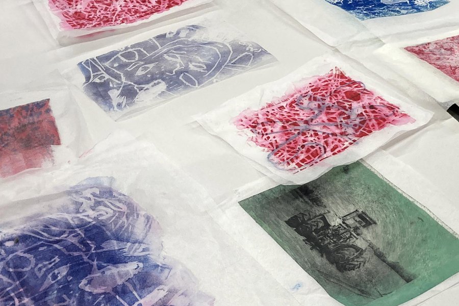 Monoprinting is a form of printmaking that creates one-of-a-kind images through the transfer of ink from one or more surfaces. Monoprints utilize a smooth solid ... more