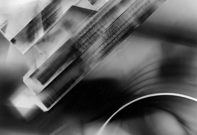 Unforeseen Structures is artist Mitch Goldstein's examination of emergent form using darkroom photography techniques, specifically the photogram. Photograms use no cameras or lenses — instead, objects are placed on or near unexposed photographic paper and briefly exposed to light. This process results in abstract black and white compositions, which emerge unpredictably from the physical materials used in their creation. Goldstein relinquishes control, relying instead on intuition and chance to allow form and structure to develop from the process.