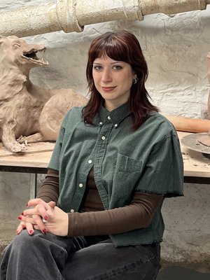 Reilly Liberto is a multidisciplinary artist exploring the intersection of clay and sound. The figure stands at the center of Reilly’s ceramic work, often taking form as holdable dolls. Reilly pulls from majolica glazing techniques to create a painterly effect on the surface of their sculptures. Utilizing found and synthesized motifs, Reilly digs through the depths of our collective feelings. Through a process of loops and improvisation, they explore the alteration of repetitive loop cycling to create dense soundscapes meant to be felt deep in your chest cavity. In both clay and sound Reilly recycles familiar imagery to highlight the more absurd nature of the world around us. Reilly plans to explore the auditory elements of clay during their residency. Reilly received a BFA in Ceramics and Sonic Art from the New York State College of Ceramics at Alfred University.