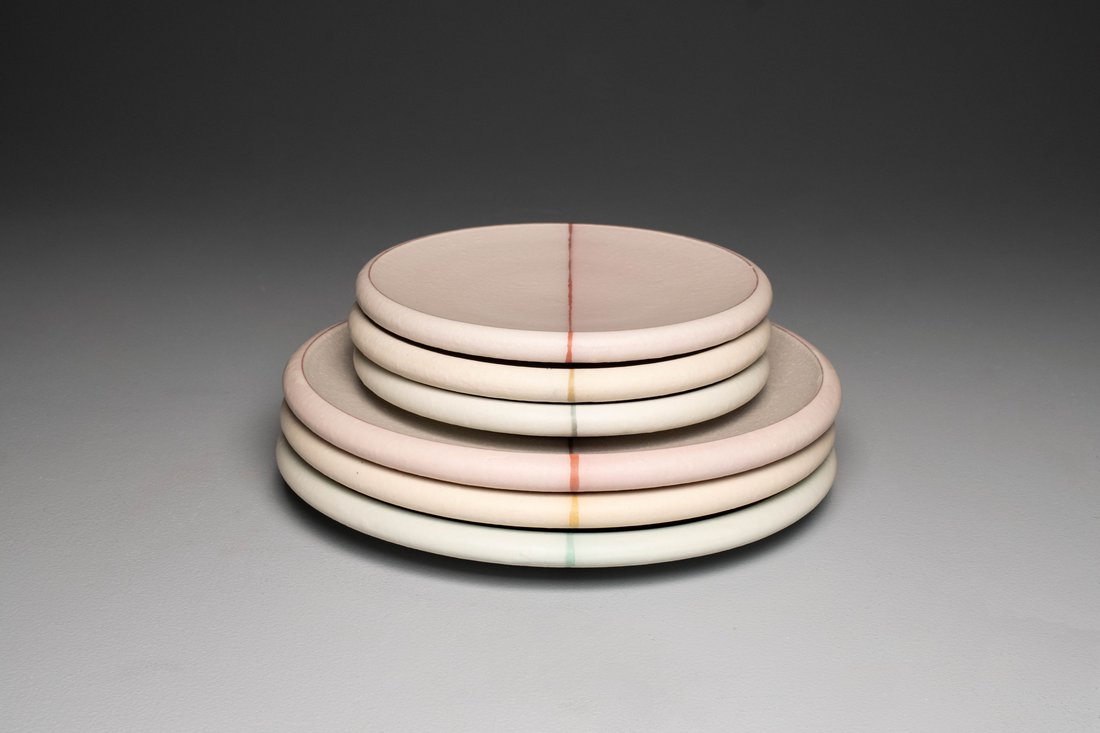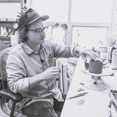 My pots are made as companions for you and your home. A vase for your table, full of freshly picked flowers as you and your partner eat breakfast and plan your day's activities. Large platters and compartment trays to present home-cooked meals with friends on a warm summer evening. Whiskey sippers that nestle in warm hands, topped off as needed from a half-empty bottle of Jack Daniels. As a maker, I play these moments on repeat in my mind. As a designer, these scenarios direct the formal elements I develop for each piece. Pushing out an exaggerated belly on a modestly portioned whiskey sipper that complements the negative space of your palm, while keeping the rim thick and beveled to a crisp that fills the void of your lips. Satin, subdued surfaces formulated to mimic aging pastels of a soft vintage quilt that lay jumbled upon a morning bed. My approach has always been to design for my fantasy of Sunday morning breakfast with a fictitious loved one and the pots that elevate that tender moment. Pots can be conductors of romantic sentiment. I hope the viewer will invite my pots into their homes where they can quietly enrich simple and significant moments. The pots I make represent my creative effort towards understanding my yearning for a romantic life I can’t seem to create or explain for myself. I believe the pots can represent this weight, to be romantic without explanation, to exist at home in the present while remaining hopeful for the future.