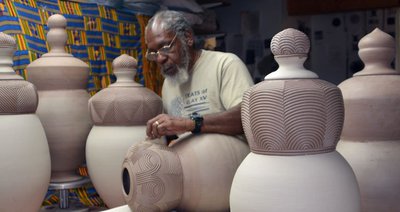 “For myself, the essence of the art experience, is one of self- discovery and communication. In one sense, it is a very private and personal journey in search of order, reason, reality and beauty. Yet in another sense, it is a very public act in the attempt to express and share, with others, my realizations and discoveries.” “The principal concern of my art is the articulation of the magnificence and nobility of the human spirit, and a celebration of my African heritage. The material I use is clay. The primary vehicle for these expressions is the vessel.” “In my view, the vessel embodies unique social and spiritual connections and associations, to all people, that does not exist in non- vessel ceramic forms. There exists in the vessel a timelessness and universality that records, contains and perpetuates the very essence of humanity and the human experience.”