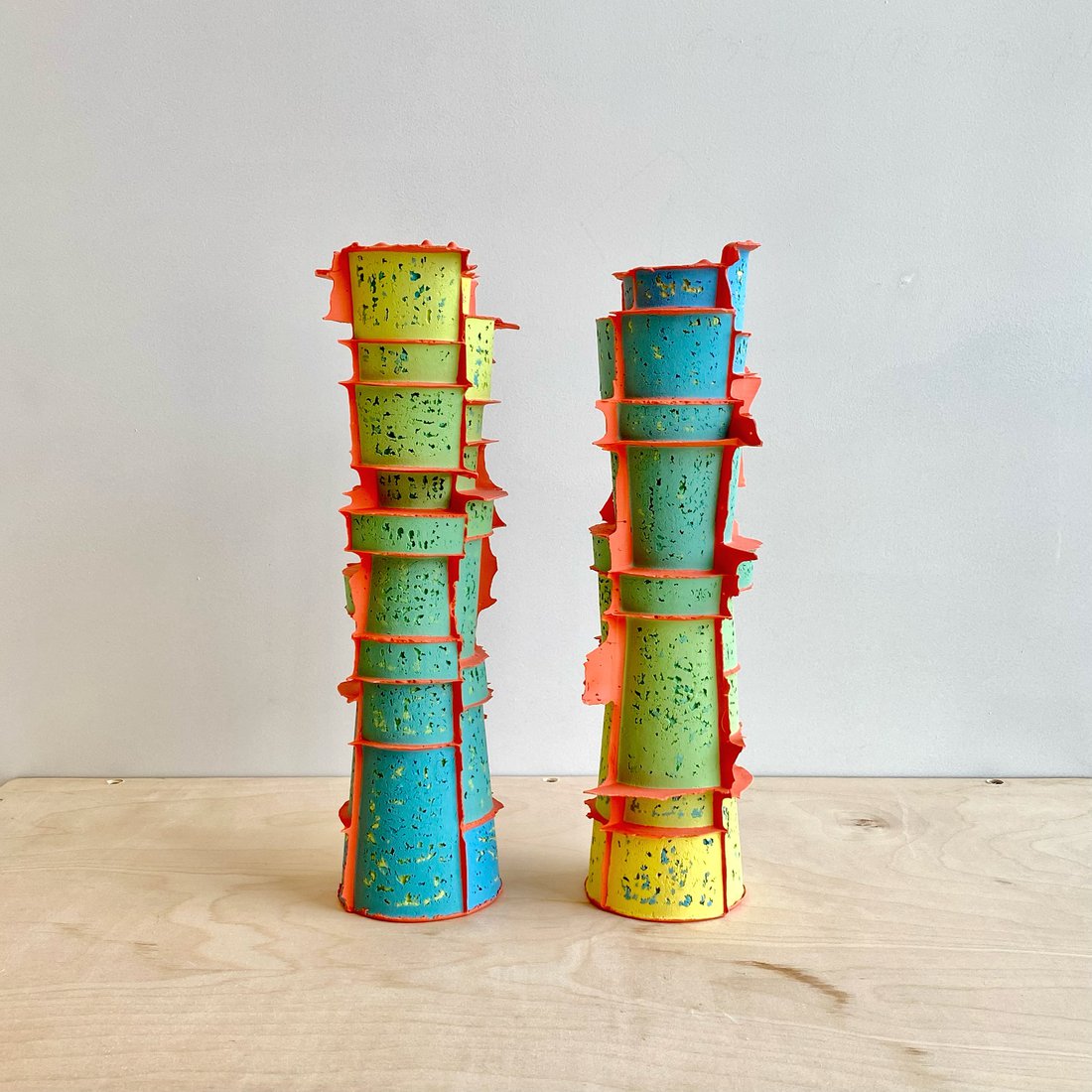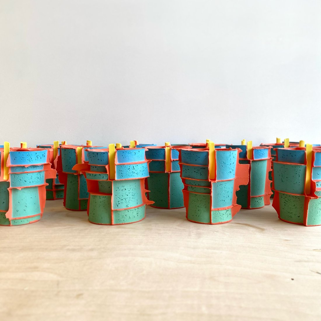 Using the traditionally rigid process of mold making that is at the core of industrial production; I deconstruct and reassemble plaster mold positives to create a multitude of unique forms. The work is created organically, responding to the outcomes and limitations of the process and material. Through play, variation and modification, I look to change simple variables to create new methods and possibilities. I often reference domestic forms that are familiar, as a means to draw a broader connection to my work. These objects exist in the grey area between vessel and sculpture, and question the boundaries of design. Through my work I hope to explore the various degrees of function, from the practical to the sculptural, while generating new ideas for uses, forms, and processes.