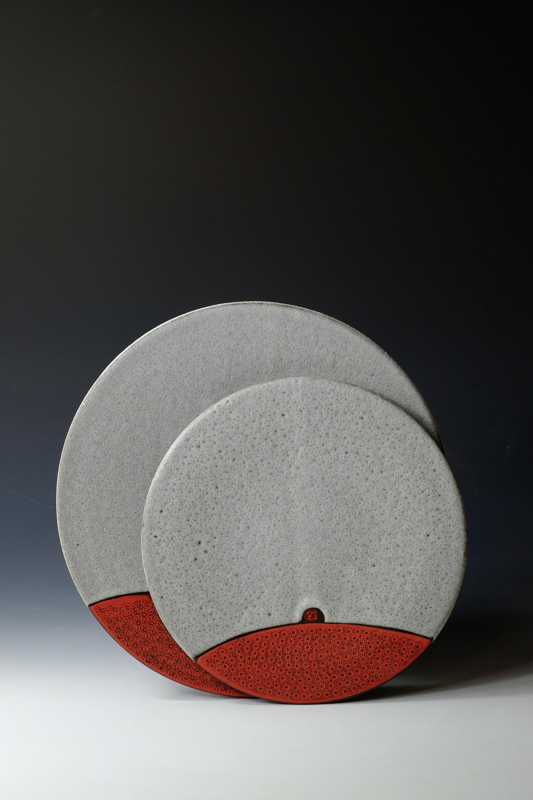 My intent is to express my thoughts through my vessels, which are mostly thrown on the potter’s wheel. For some of my pieces, I use traditional Korean techniques — inhwamun stamping/inlay technique to create floral patterns, and gwiyal slip technique to apply expressive color slips. I believe that the combination of these time-tested techniques and my modern forms create unique, artful pieces that are beautiful yet practical.